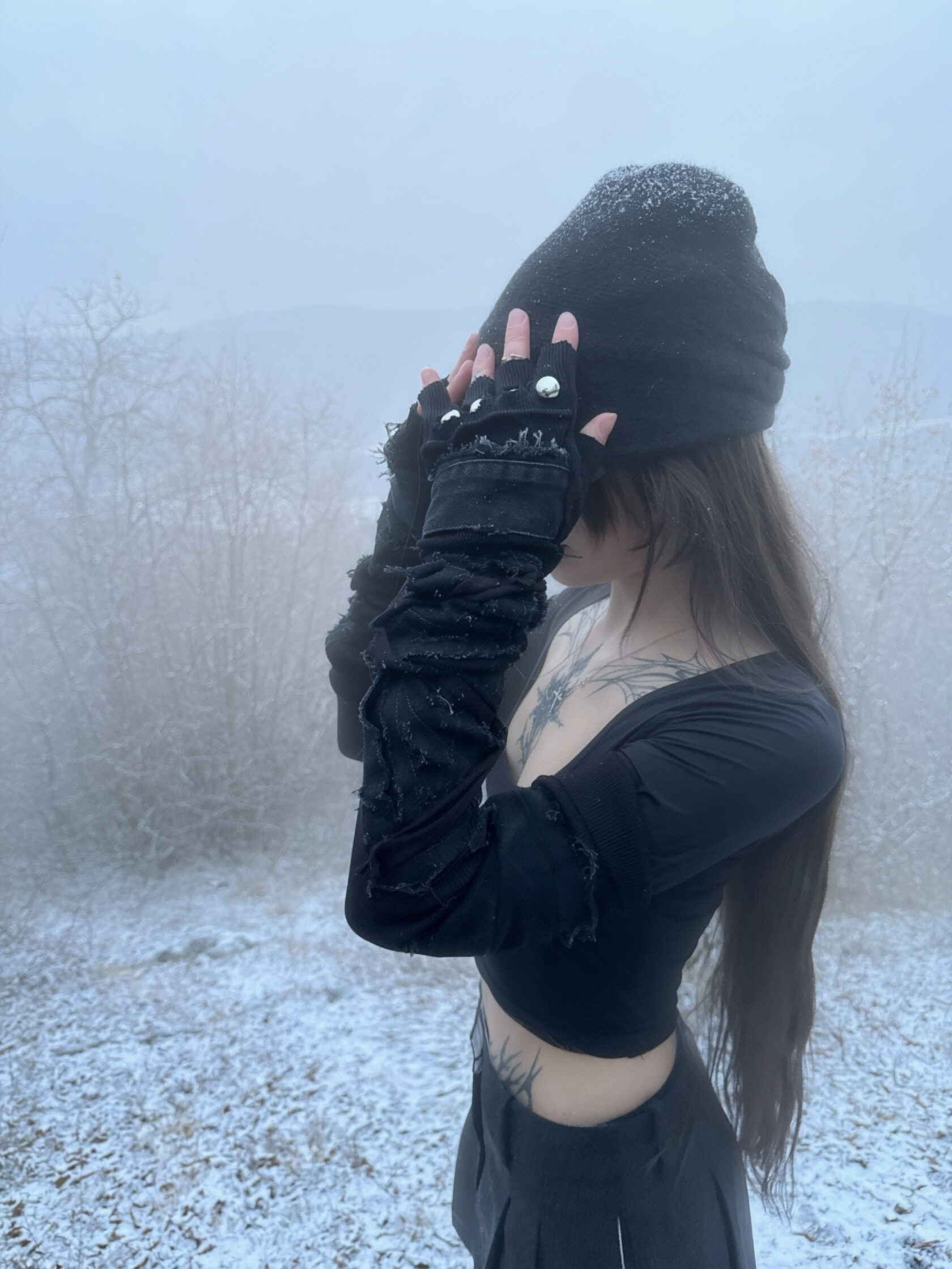 black short gloves